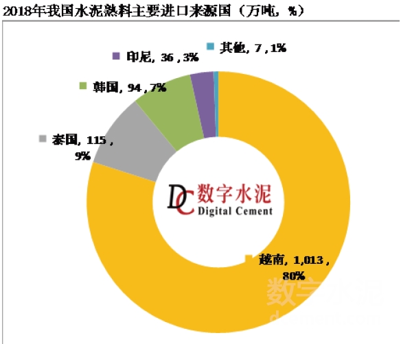 3、熟料進口量來源國主要來自越南、泰國和韓國