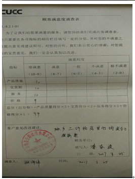 2、致力提升客戶滿意度。為更客觀評價公司為客戶提供的的產(chǎn)品和服務(wù)水平,發(fā)現(xiàn)自身存在的不足,推動業(yè)務(wù)改善,公司采取各種措施提升客戶滿意度。經(jīng)調(diào)查了解,與當(dāng)?shù)仄渌嗥髽I(yè)相比,我司在客戶中有良好的口碑。